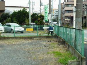 賃貸駐車場なのですが、あまりに凄い雑草なので夏前と秋になると毎年時間を見つけて草むしりをスタッフの有志で行っています。