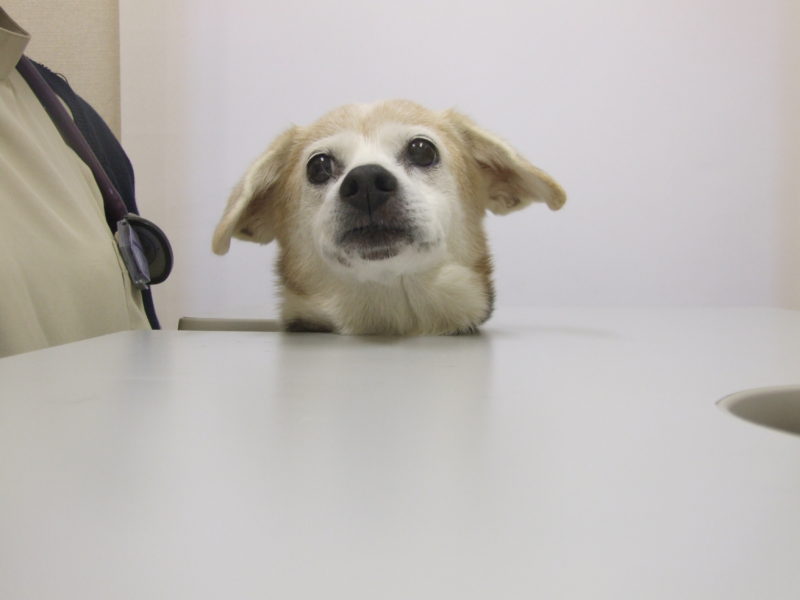 大きい体のシロですが、診察台の上でプルプル震えています。