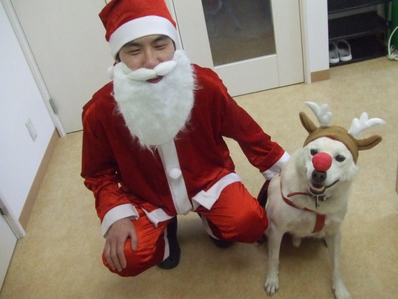 それにしても、サンタの山田先生もトナカイ役のシロもコスチュームがよく似合うこと!